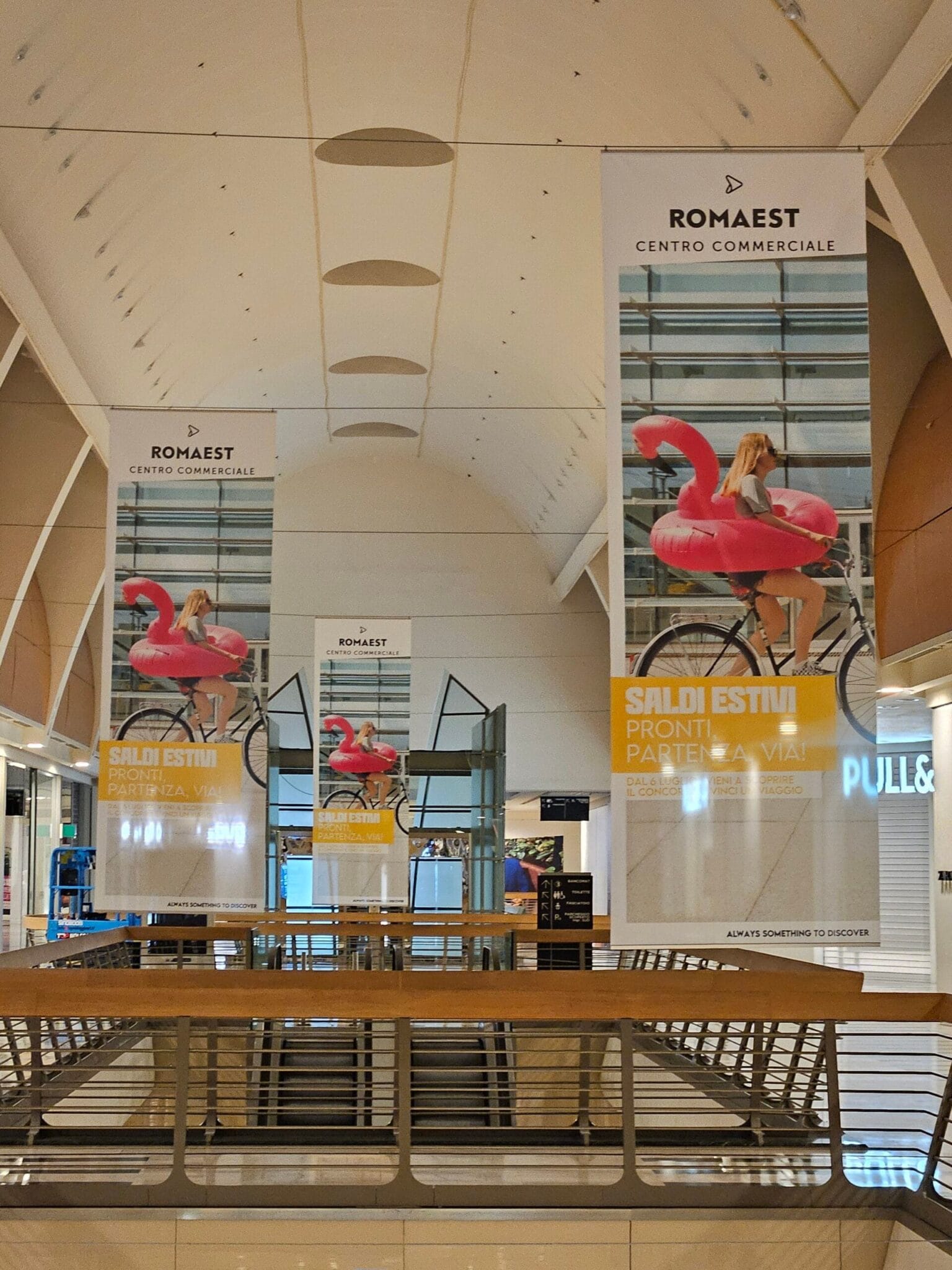 Il rivestimento continuo di parapetti e strutture laterali trasforma questi percorsi in superfici pubblicitarie ad altissima esposizione, garantendo visibilità su più livelli e una ripetizione costante del messaggio.
